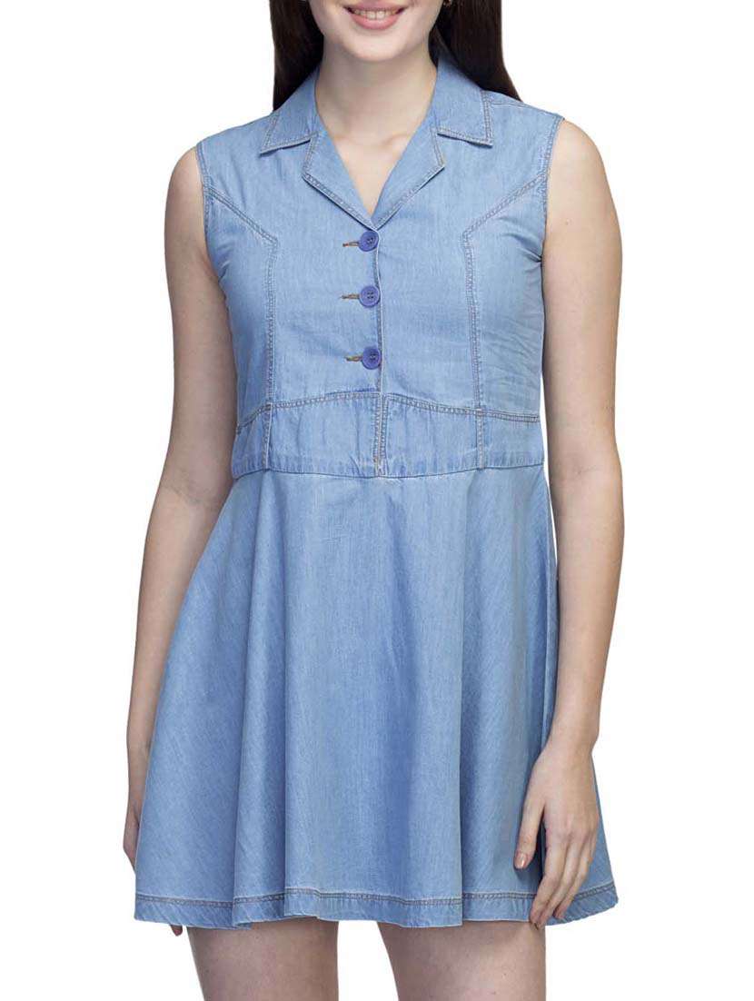 - » light blue denim skater dress