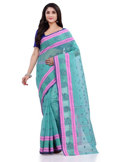 Explore the collection of beautifully Bengal Traditional Tant/Tangail Handloom Cotton Saree Hand Made Cotton Tant Saree of West Bengal Kamal kolka Woven Designer Woven Design Pure Handloom Cotton Saree from Desh Bidesh. Kamal kolka Woven Designer Saree Its Make you feel of love Each piece is elegantly crafted and will surely add to your wardrobe. Perfect Festival Saree for all ages Womens Pair this piece with heels or flats for a graceful look like Puja, Fasival, Casual, Party Designer Saree. You can wear this saree in all occasions specially Puja, Party and any occasion in your family or friends. The decorative material is Cotton Threads. Its unique color combination and Soft Bengal handloom Cotton tant saree The Elegant Class saree has comes from the Desh Bidesh. customer satisfaction is the utmost priority . The color may vary due to screen setting . Fabric: Pure Cotton; Length: 5.5 meter Set Content: Without Blouse Piece