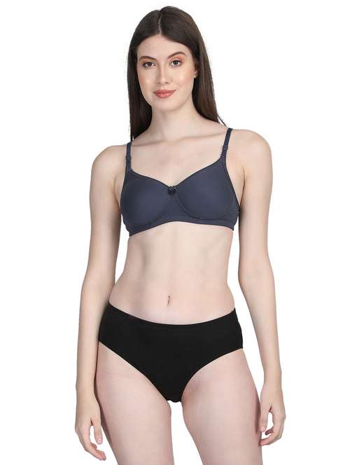 women solid bra and panty set