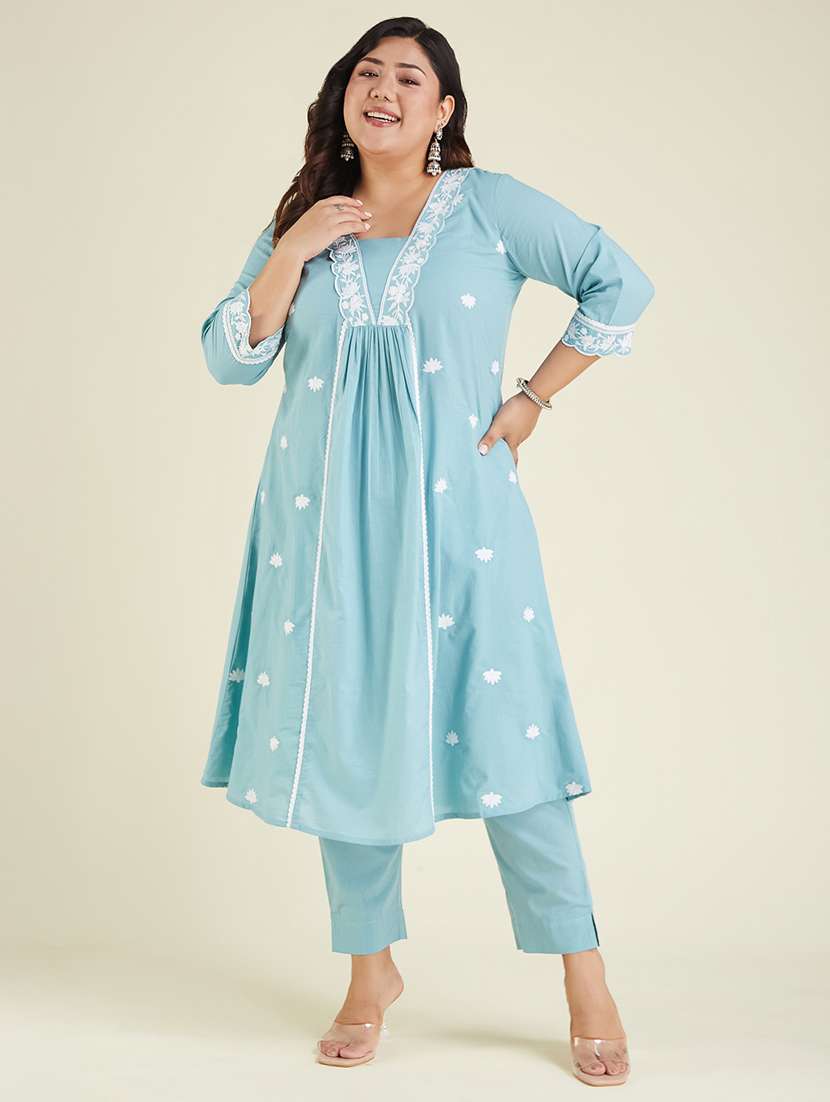 - Find gorgeous sets of ethnic wears in trending designs in light blue colors suitable for casual wear of occasions.