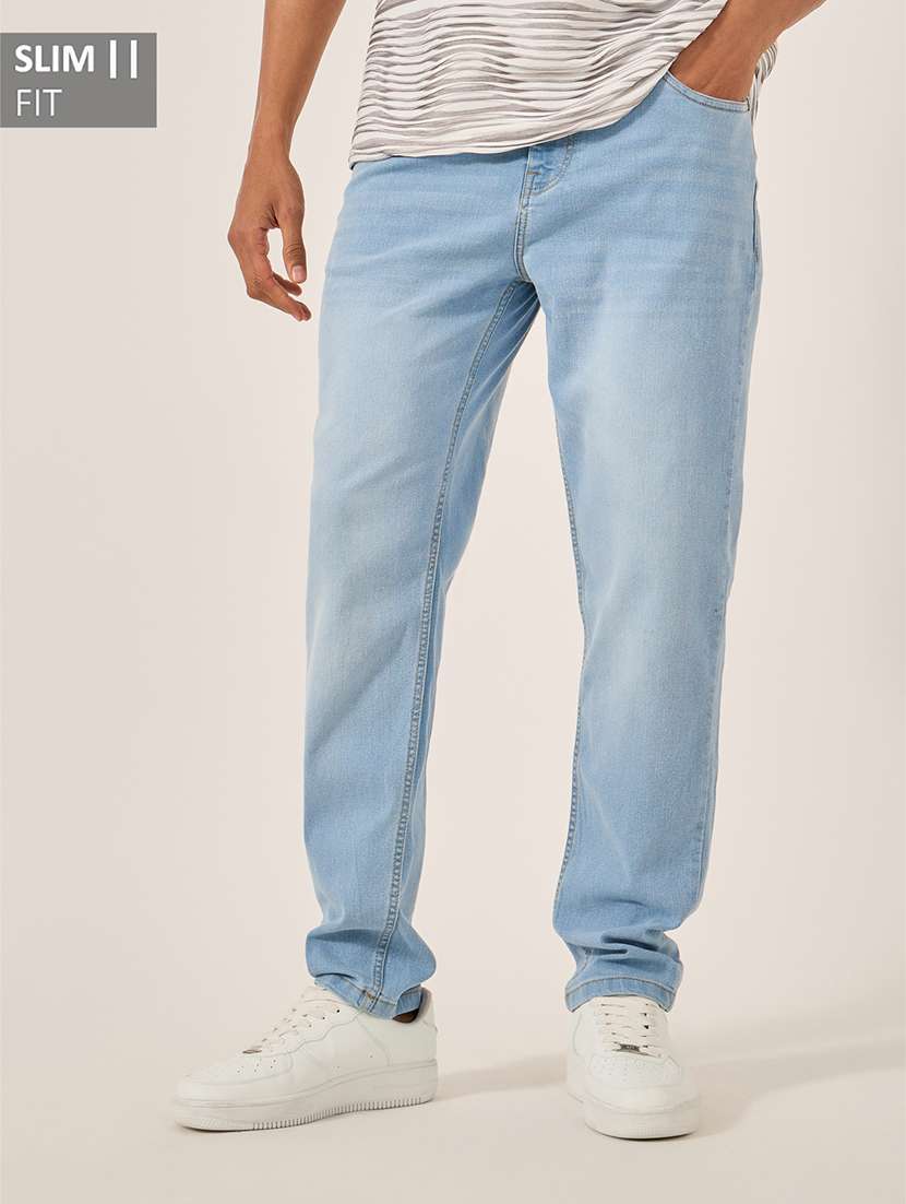 men washed mid rise full length jeans
