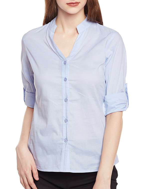 roll up sleeved mandarin collar shirt - 14372631 - Very Small Image - 1