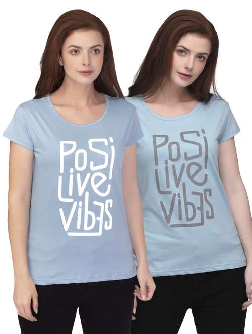 - Get ready to adorn some funky tees! LimeRoad brings to you the finest collection of tees from Kudoz and that too in light blue colours.