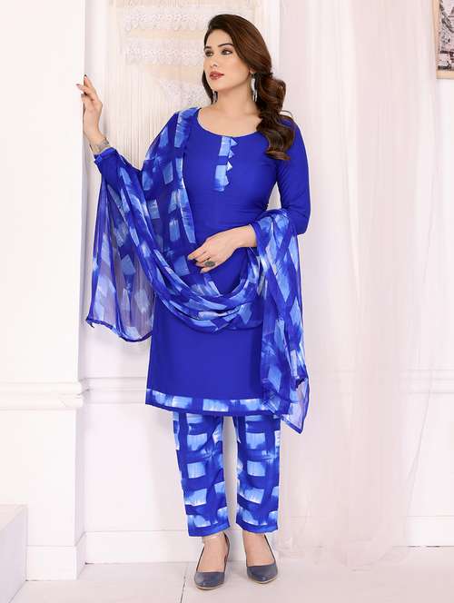 - Look ultra gorgeous in unstitched suits from Anand Sarees and grab these beautiful suits in blue colour.