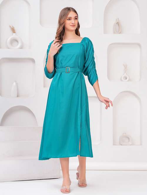 - » women solid puff sleeves a-line dress