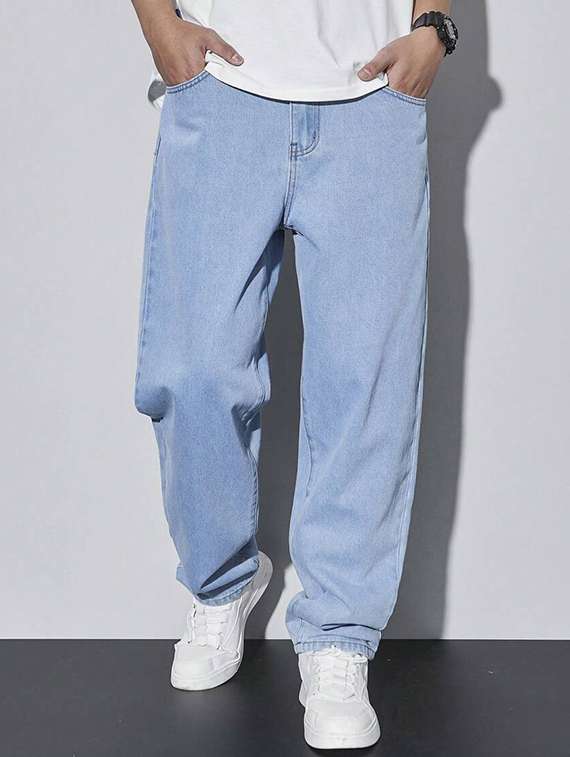 men solid mid rise baggy jean