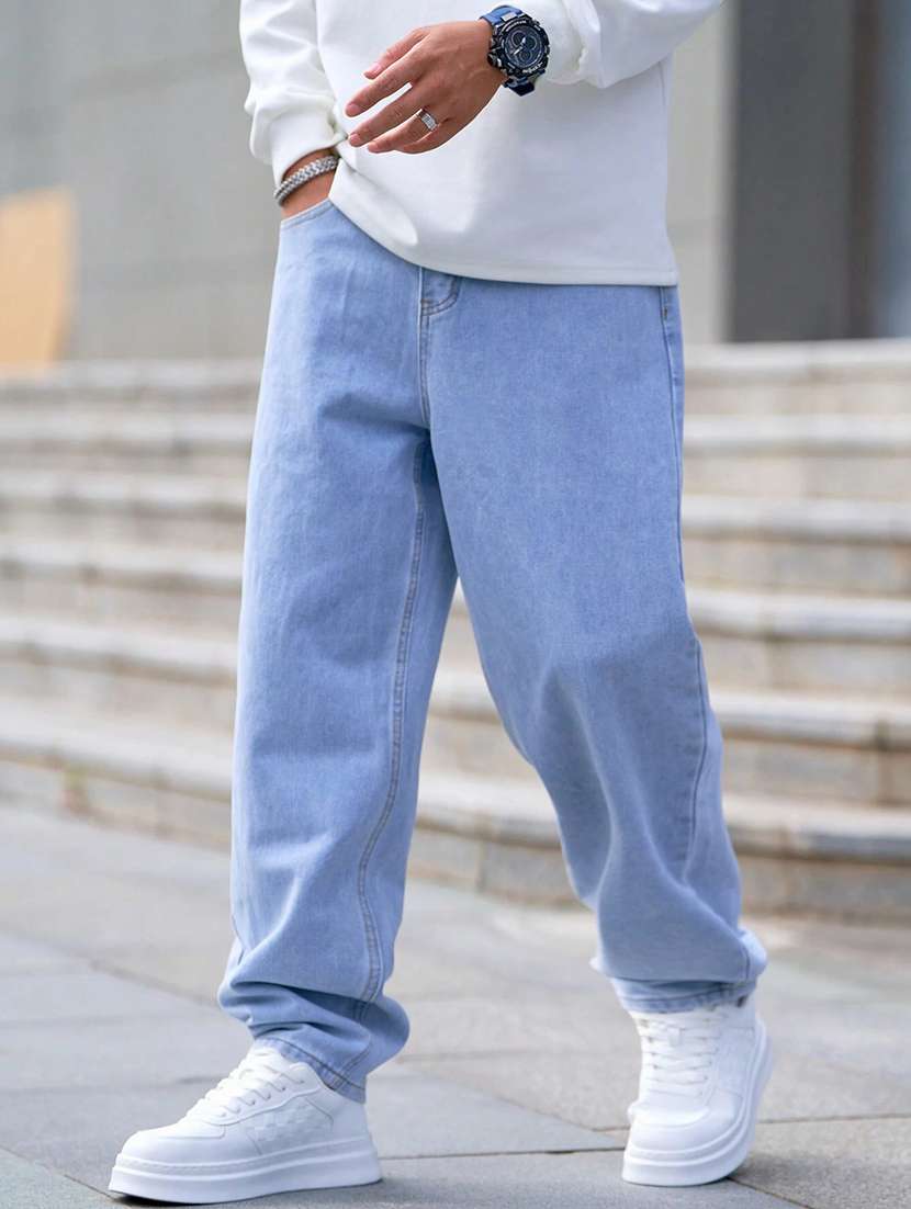 men plain mid rise full length baggy jeans