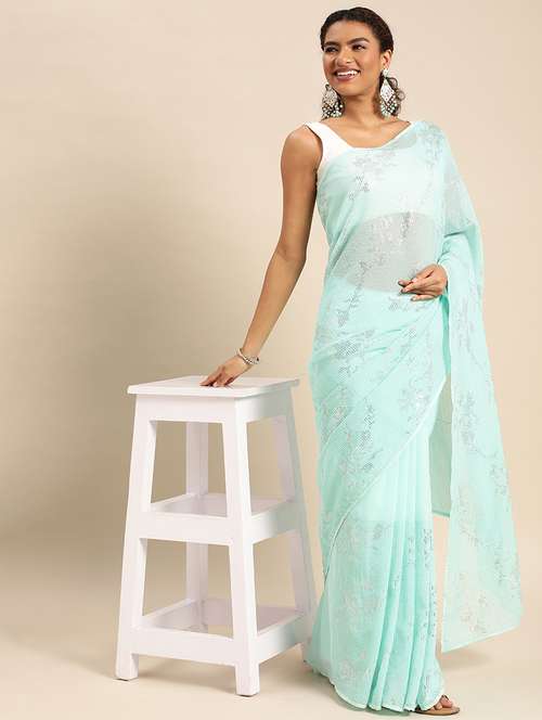 women solid with work embellished saree with blouse - 21949987 - Very Small Image - 1