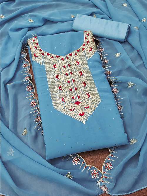 - Look ultra gorgeous in unstitched suits from Lilots and grab these beautiful suits in light blue colour.