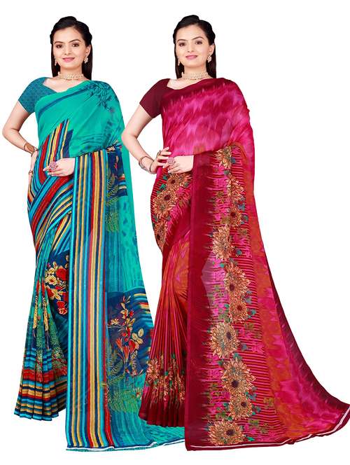 women pack of 2 casual wear combo sarees with blouse