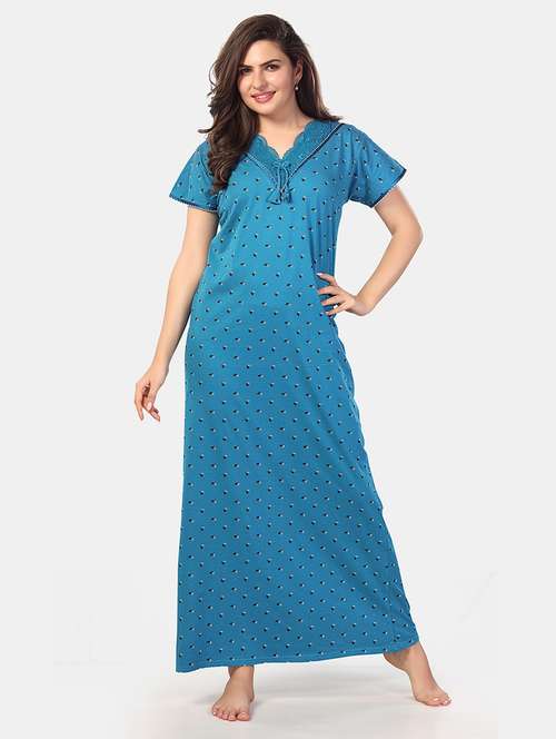 Make yourself look highly comfortable & stylish with this Shinker Cotton Nighty / Night Gowns. It has overall printed night Gown has less V neck with Short Sleeves.. It is the ultimate blend of comfort.