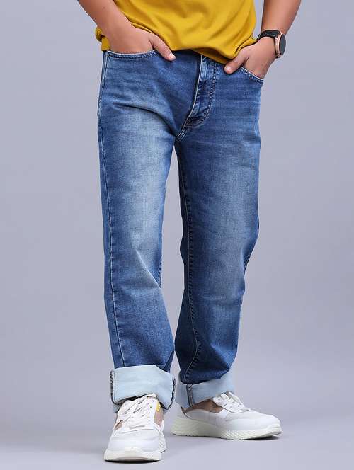men plain mid rise baggy jeans