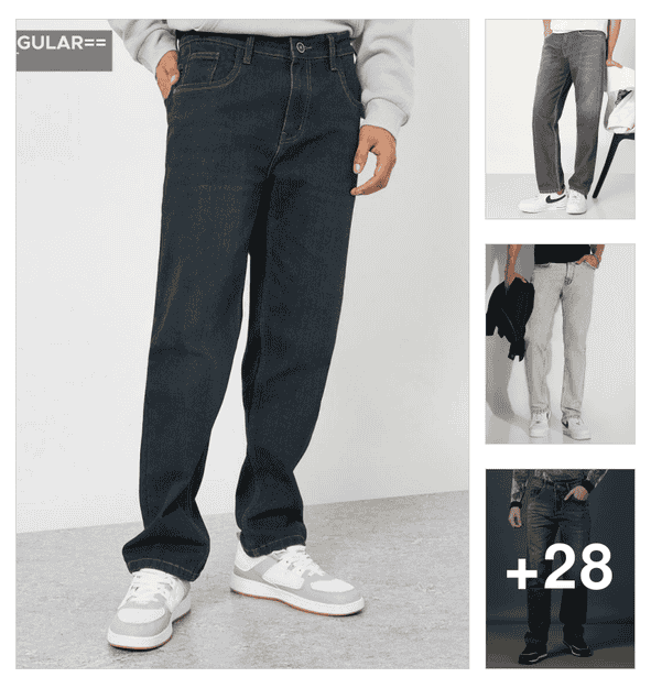 men plain mid rise full length baggy jeans