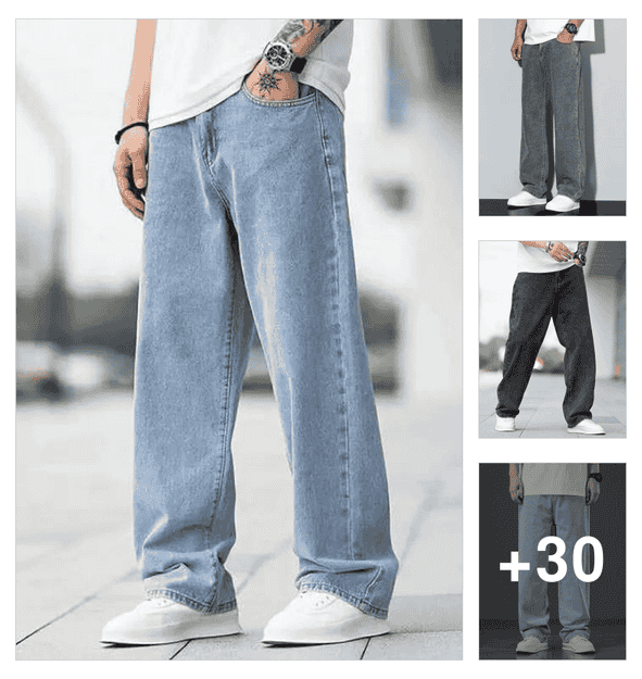 men plain mid rise baggy jeans