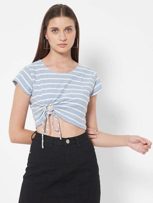 - » round neck striped crop top
