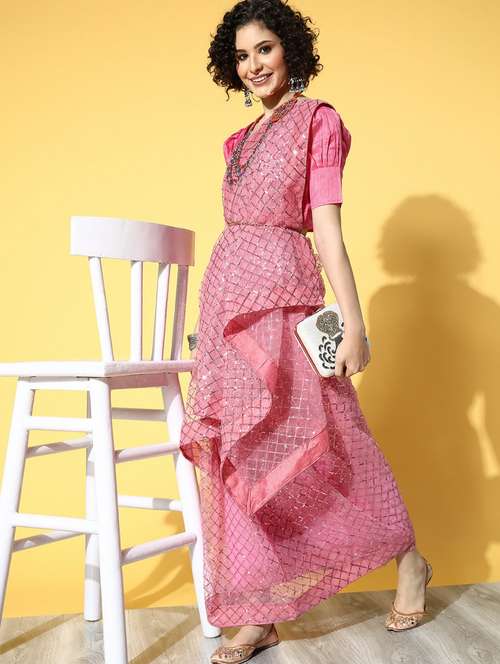 arriva fab Women's Net Saree with Sequin Embroidery Work Exclusive Saree