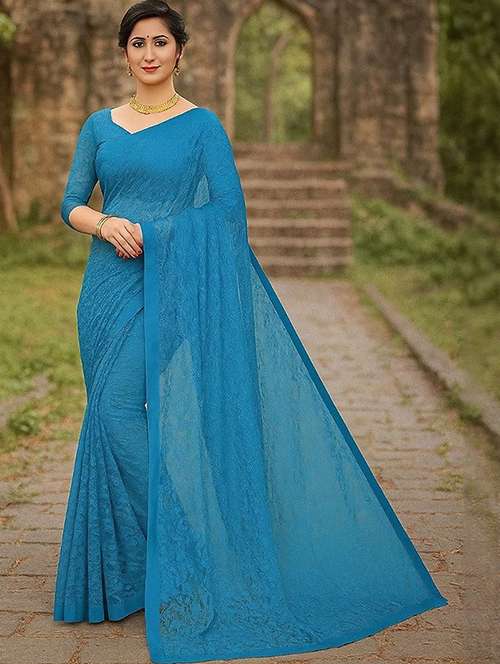 women self design plain saree with blouse