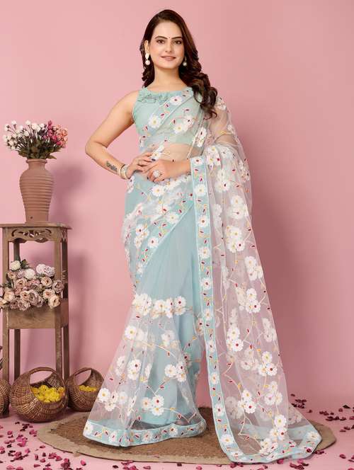 Vairagee Soft Net Embroidery Saree & Mono Banglory Blouse