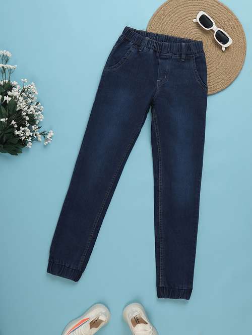 solid dark blue jogger jeans