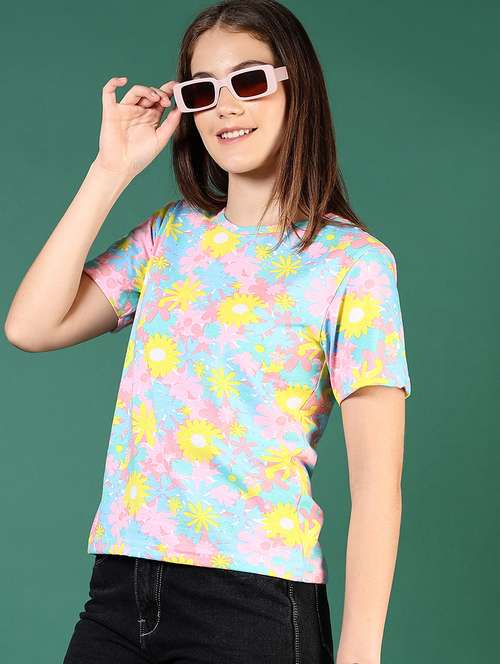 - » women floral print short sleeve regular t-shirt
