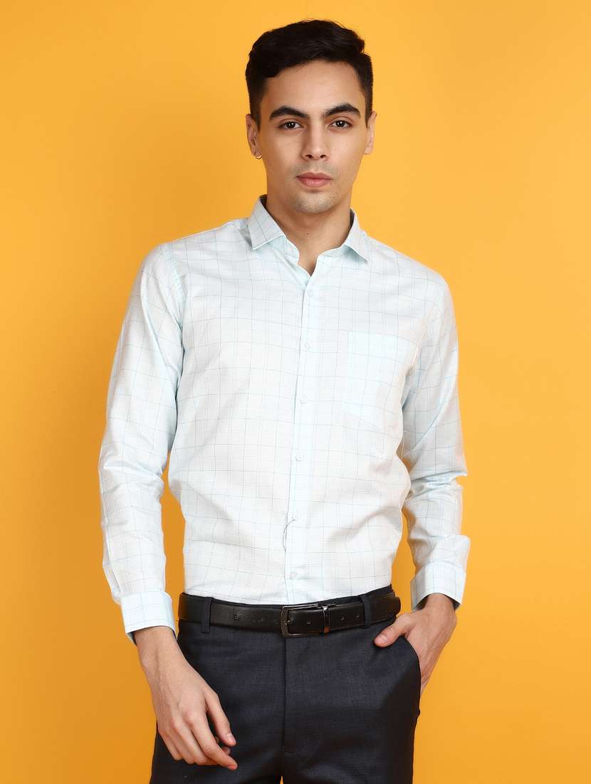 - » men white checked printed formal shirt