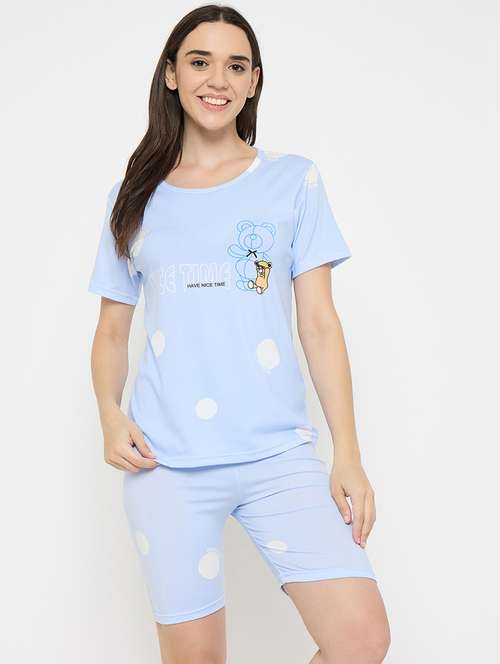 - After a long tiring day, slip into something homely, shop for the all-new collection of nightwear sets for ladies in M sizes and gorgeous blue designs and colors.