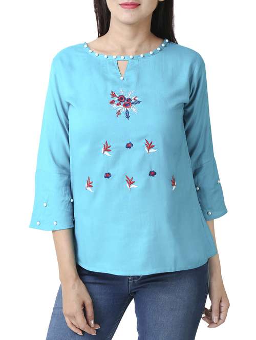 pearl embellished embroidered top - 16018328 - Very Small Image - 1