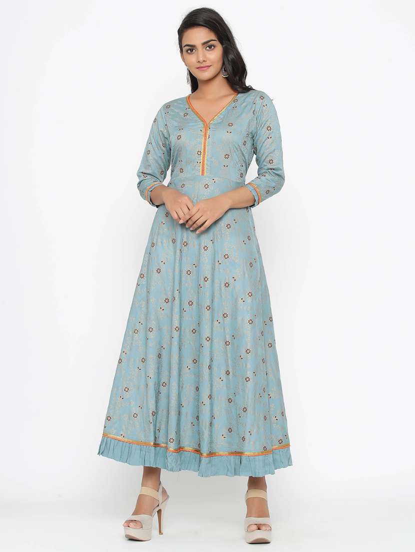 gold print flared ethnic dress - 17295943 - Very Small Image - 1