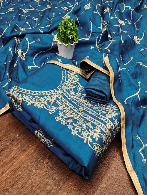 - Look ultra gorgeous in unstitched suits from Lilots and grab these beautiful suits in blue colour.