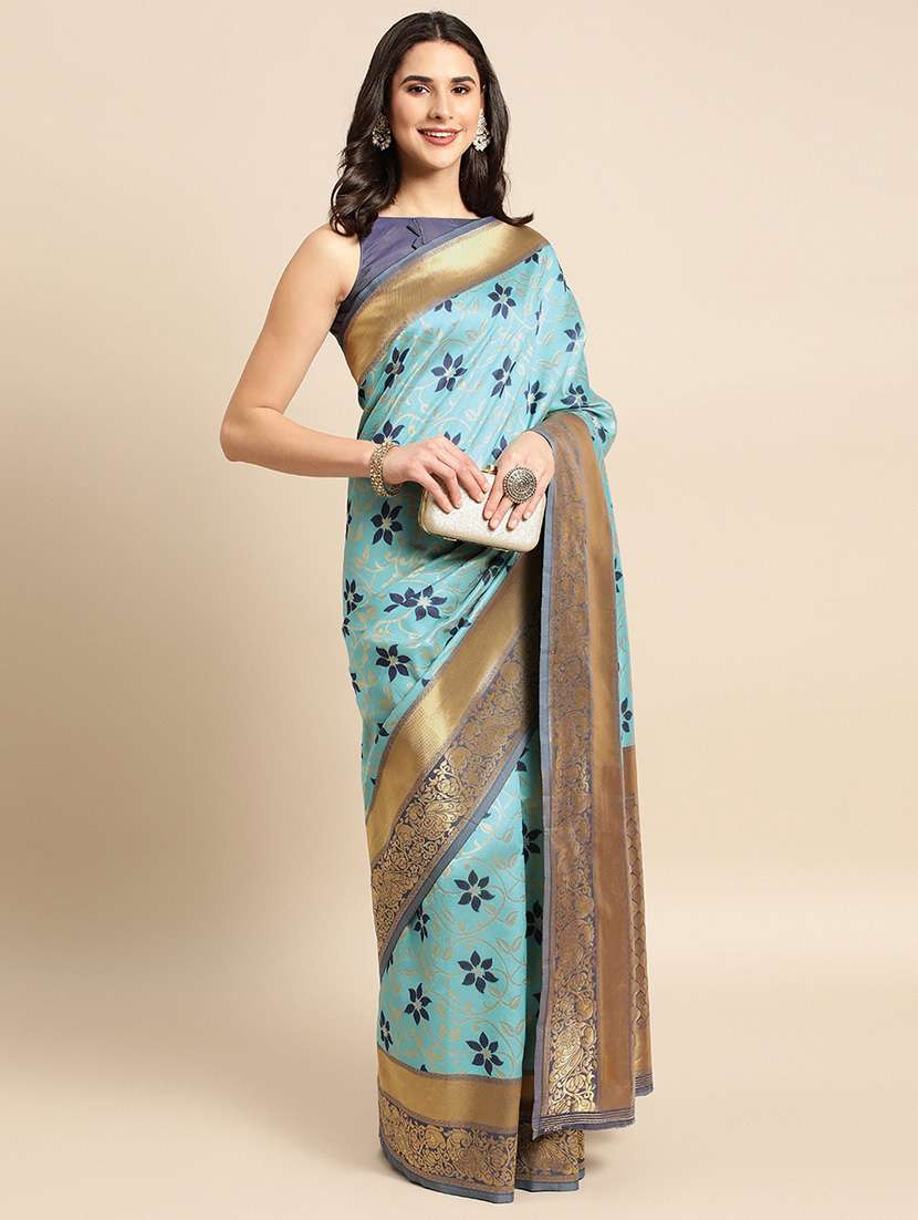- » women's self design light blue colored saree with blouse