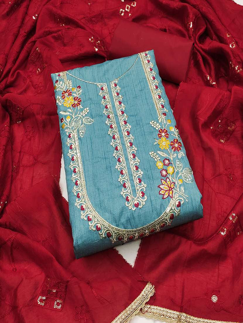 • Look ultra gorgeous in unstitched suits from Lilots and grab these beautiful suits in light blue colour.