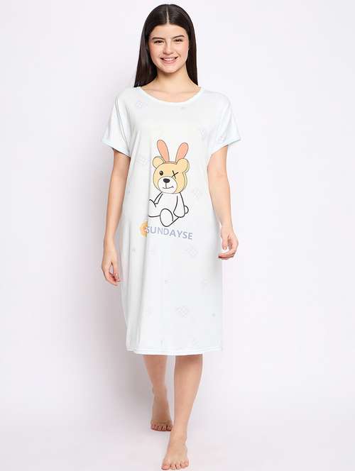 - » women printed round neck short sleeves sleepshirt