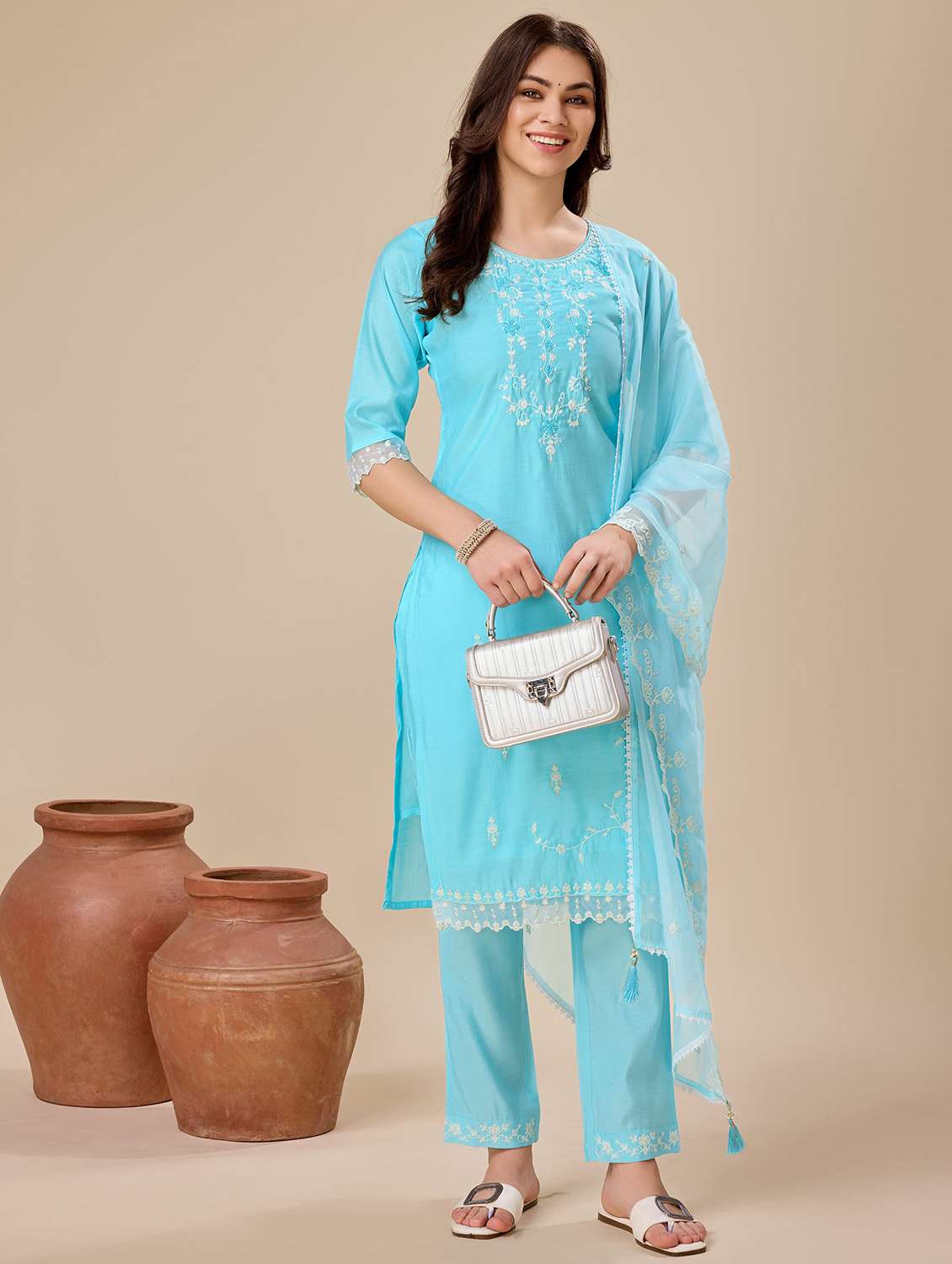 - Find gorgeous sets of ethnic wears in trending designs in light blue colors suitable for festive wear of occasions.