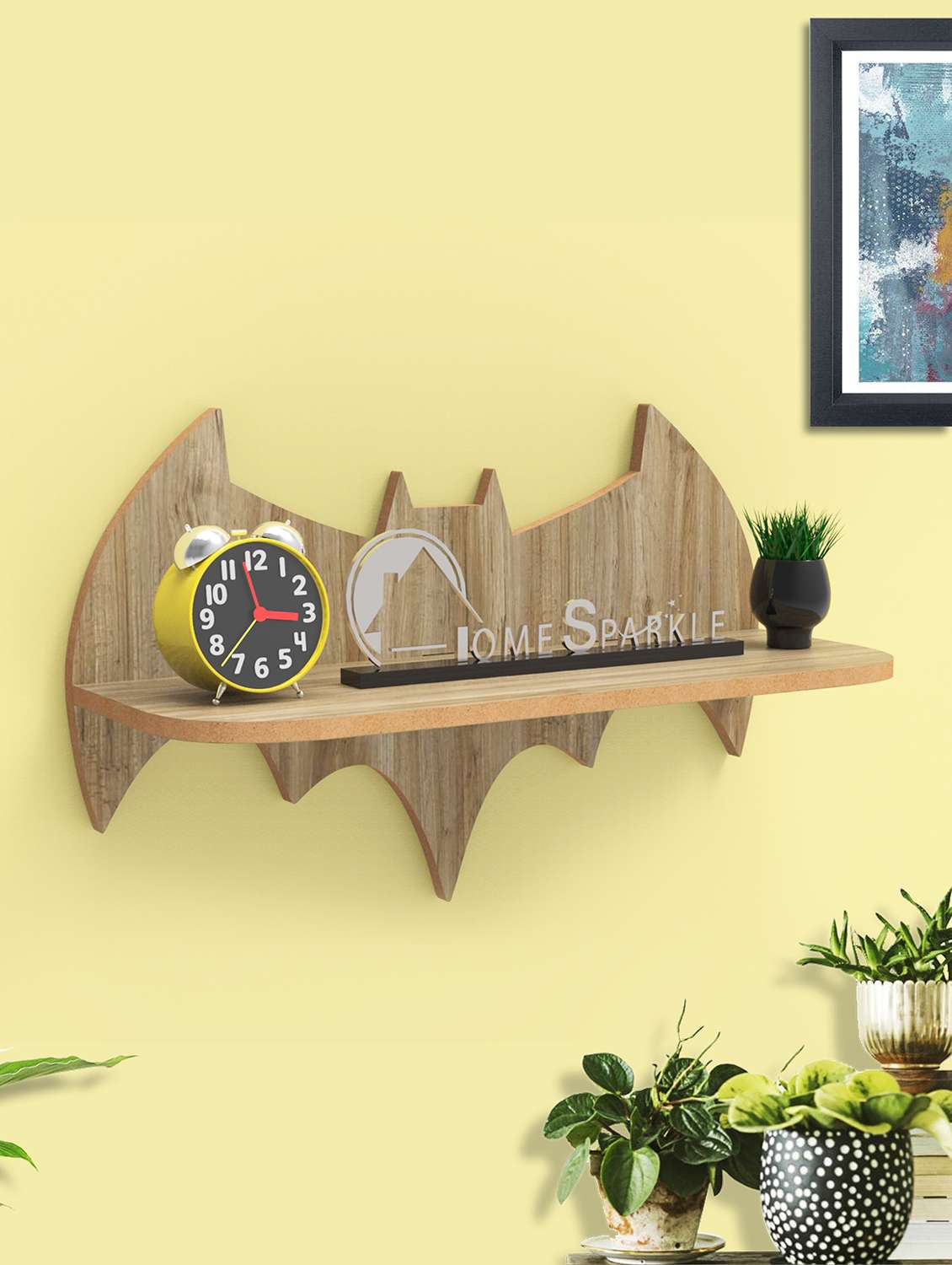 Home Sparkle Batman Wall Shelf MDF Wall Shelf Rack Wall Mounted Floating Shelves (Light Brown)