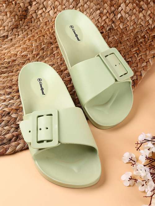 women solid slip on slides