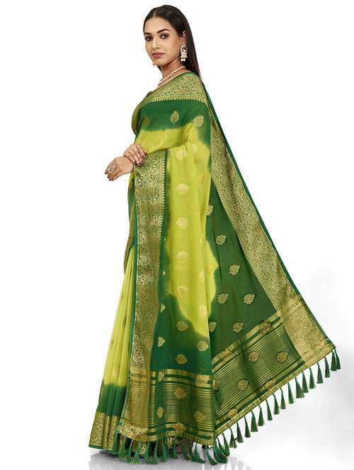 women's self design dark green colored saree with blouse - 19517966 - Very Small Image - 1