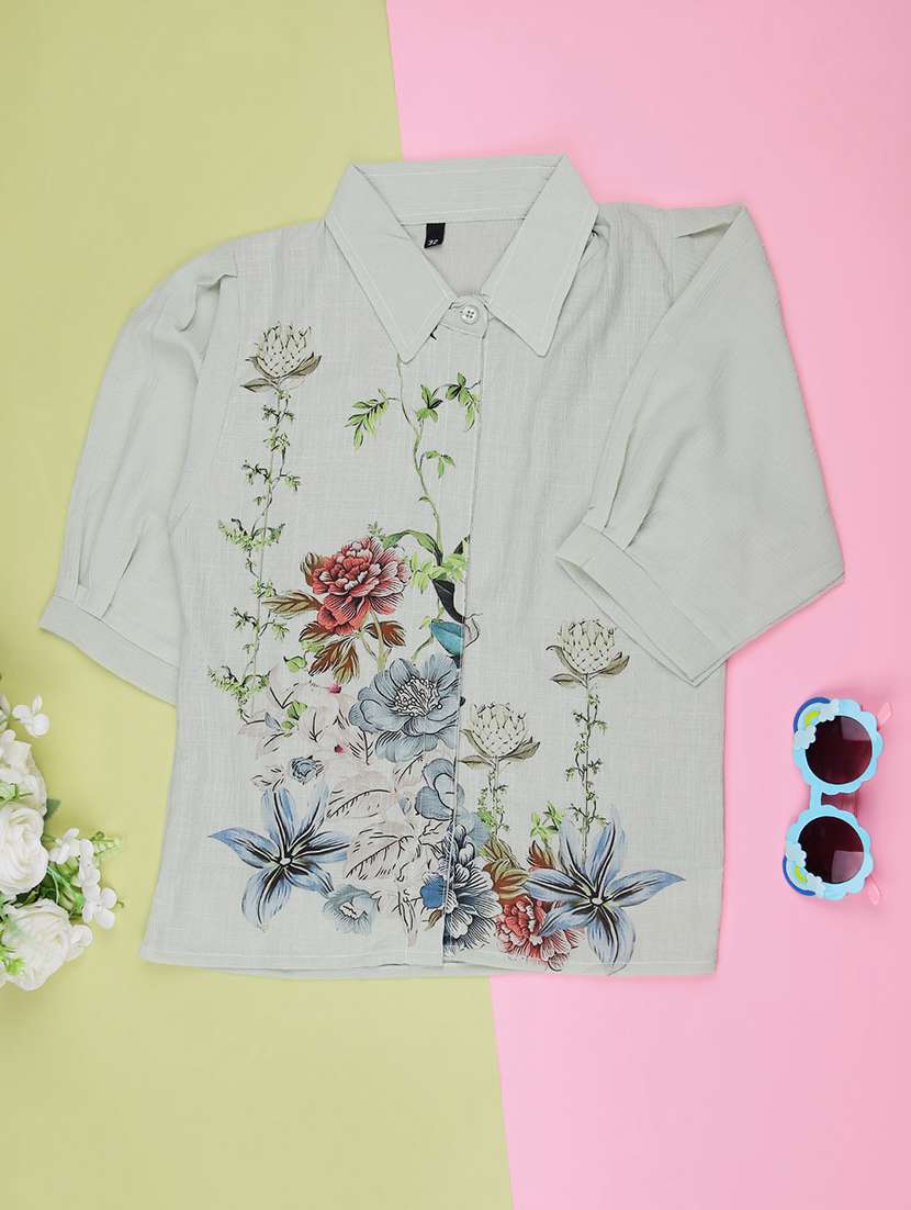 - » girls floral printed three quarter sleeve top