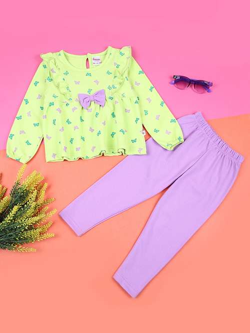 - Browse through the huge collection of casual wear twin sets and jump suits for girls in lime colors and designs to make your young lady look the fashionista that she is.