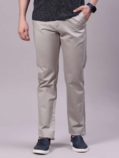 - » men solid mid rise flat front casual trouser
