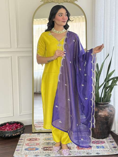 women three quarter sleeve kurta pant with dupatta set - 21932481 - Very Small Image - 1
