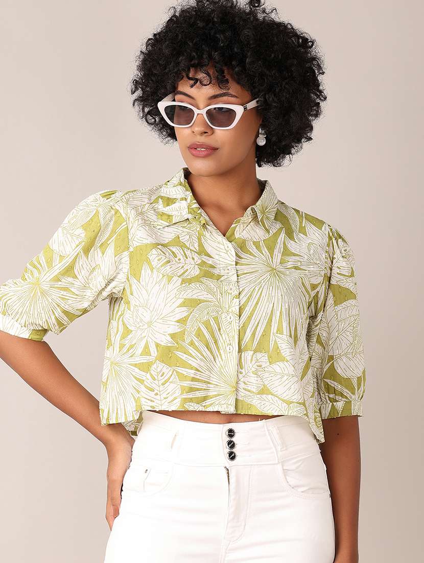 women printed puff sleeve crop shirt style yop