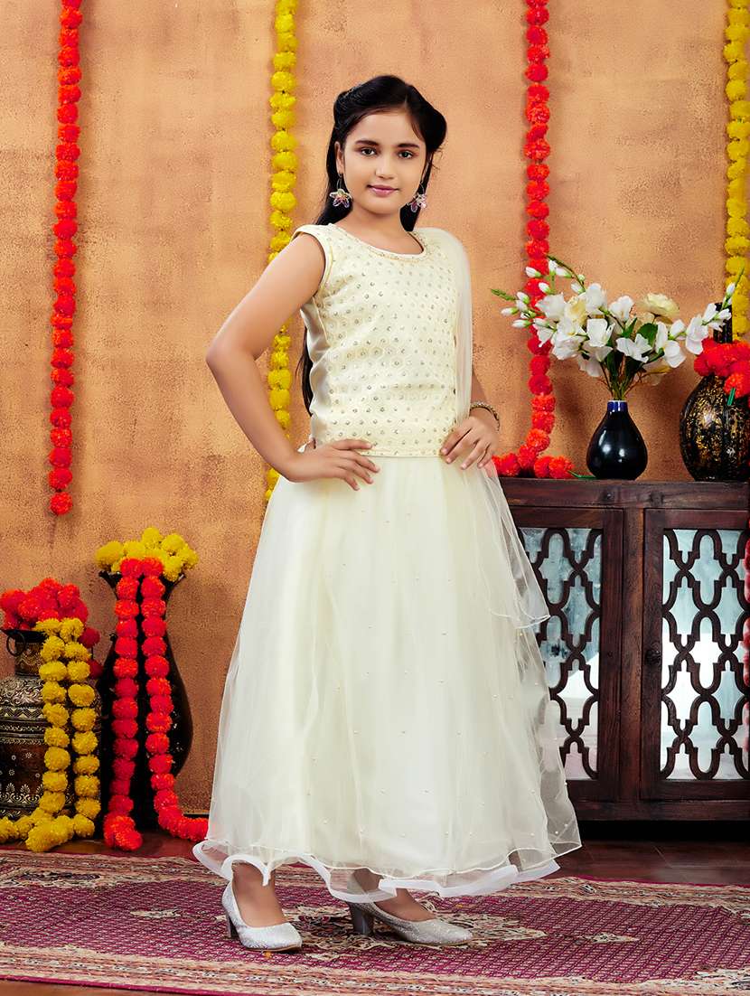 girls sequin work sleeveless lehenga choli with dupatta