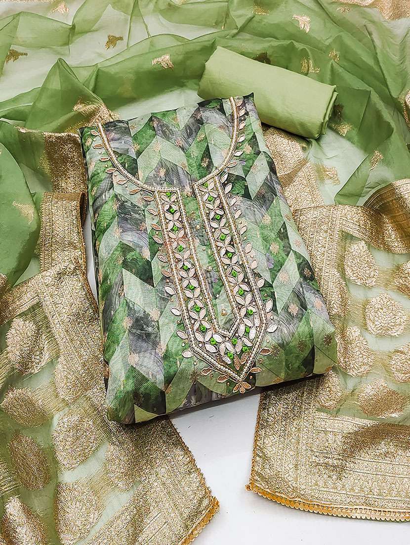 • Look ultra gorgeous in unstitched suits from Lilots and grab these beautiful suits in lime colour.