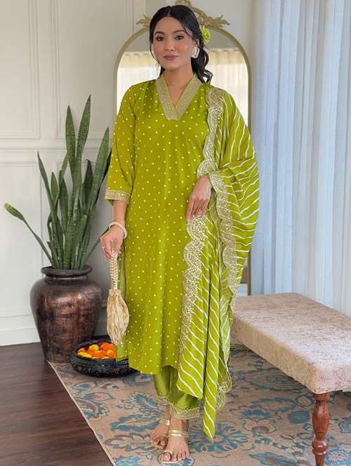 - Find gorgeous sets of ethnic wears in trending designs in lime colors suitable for festive wear of occasions.