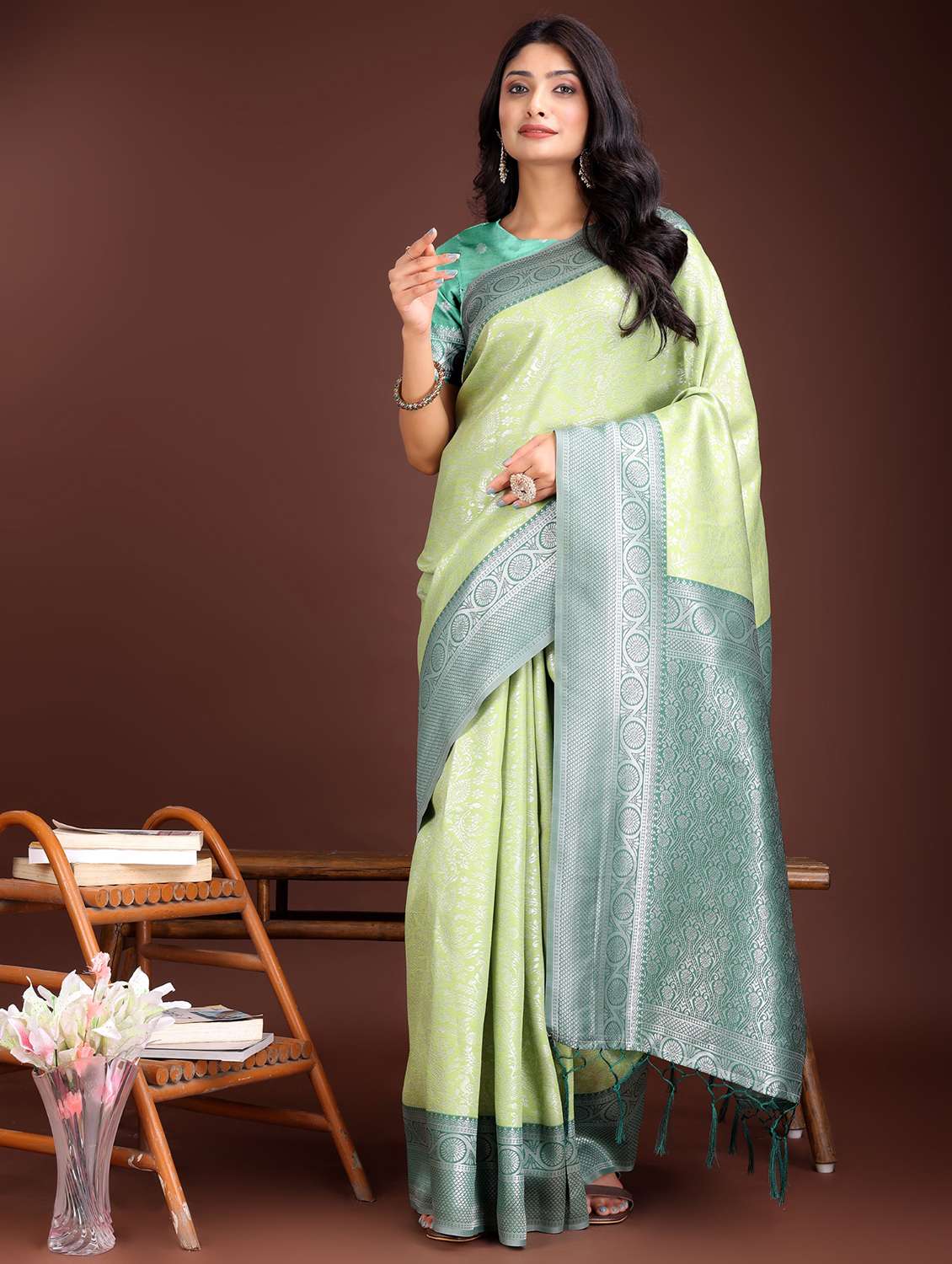 Women's Lichi Silk Saree with Rich Circular Zari Border And Matching Blouse