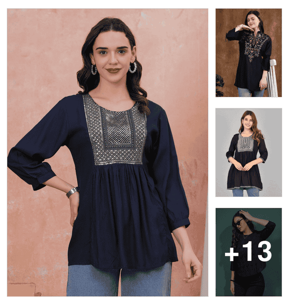 Midnight Bloom | Embroidered Tops
