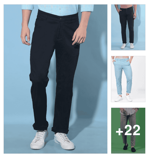 men solid mid rise chinos casual trouser