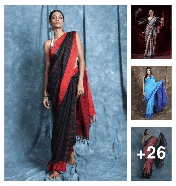 women striped handloom saree with blouse