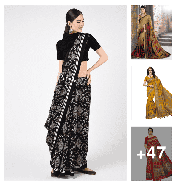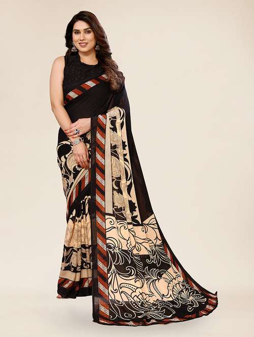 cotton sarees in the stunning black colour. You can work them up with your plain blouses. You will find both solid and printed numbers in our collection.