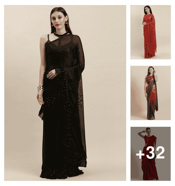 women black plain saree with blouse